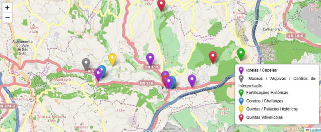 Figura 5 Património Construído em Bucelas, mapa interativo
